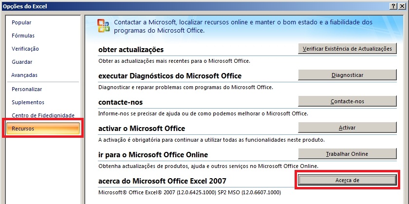 Saber a versão do Microsoft Excel
